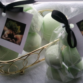 I handmade these bath bomb fizzies. They are shaped like large gum drops and almost an ounce each. Use them to fragrance your bath as well as moisturize and soften your skin. We make these with extra fragrance and extra Vitamin E. Great for gifts, birthdays or every day use.